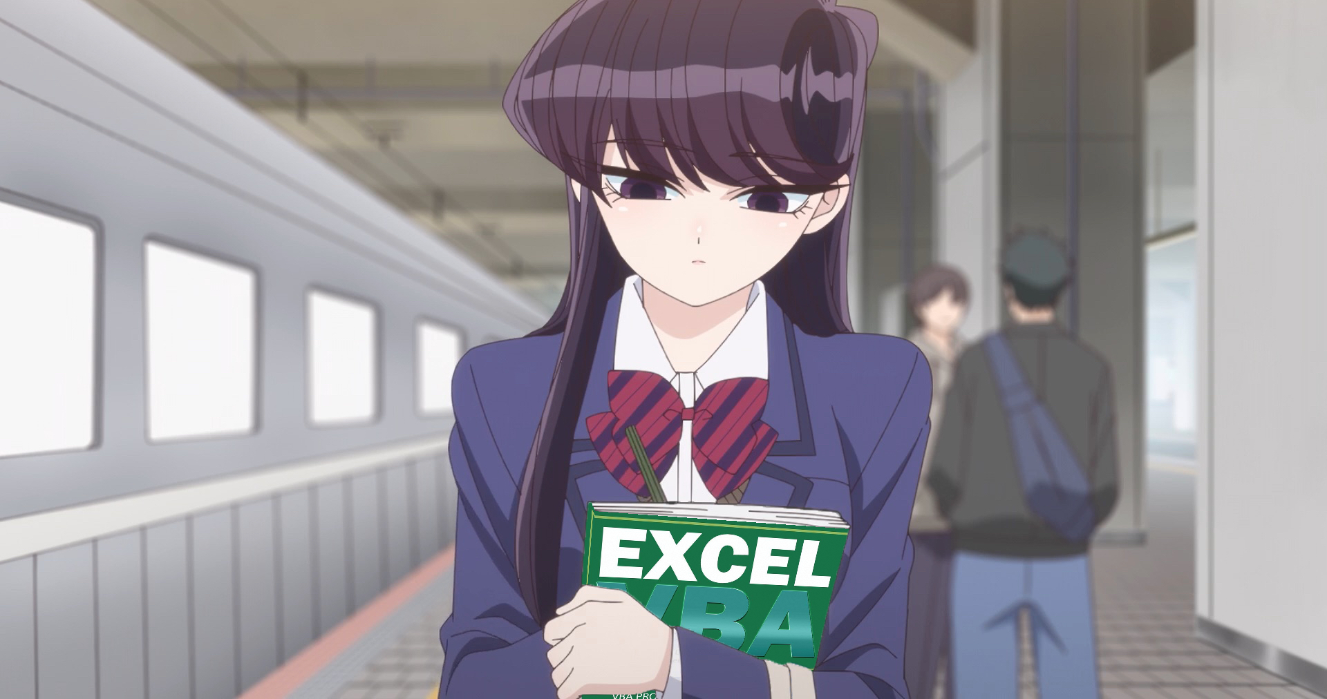 Shouko Komi (古見 硝子 (こみ しょうこ)) from Komi Can't Communicate ( Komi-san wa, Komyushou desu / 古見さんは、コミュ症です。 ) holding EXCEL VBA programming book