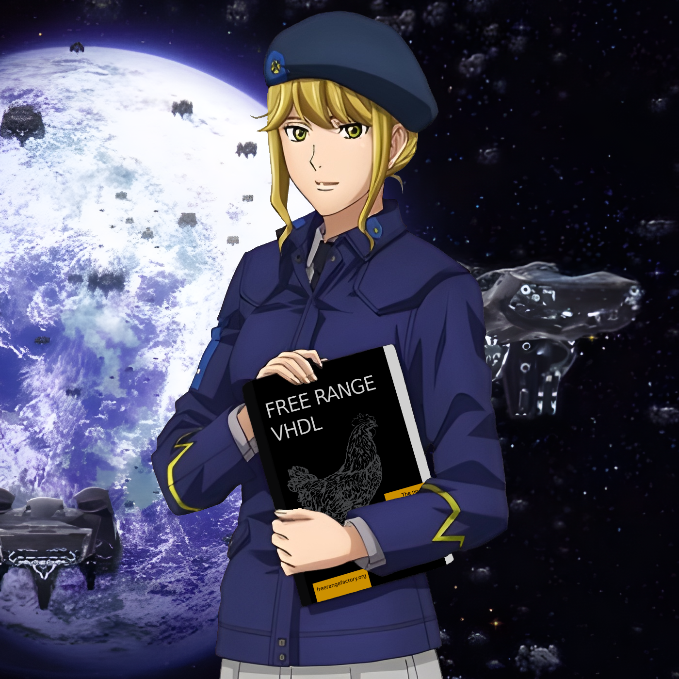 add Frederica Greenhill holding Free Range VHDL by Bryan Mealy and Fabrizio Tappero